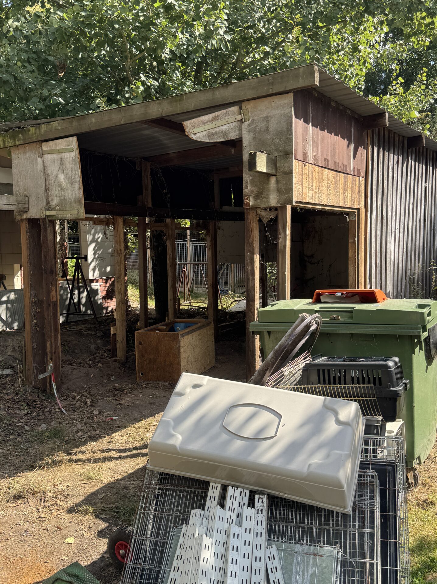 Damit der Außenbereich weiter bearbeitet werden kann, muss der Schuppen vor dem Hundehaus weichen. Jahrzehnte lang hat der Schuppen das Bild in dem Bereich des Tierheims geprägt. Ich bin froh das wir nun auch diese Altlast beseitigen können. Dank fleißiger Hilfe von einem ehrenamtlichen Helfer, konnte der Schuppen nach kurzer Zeit abgehakt werden.