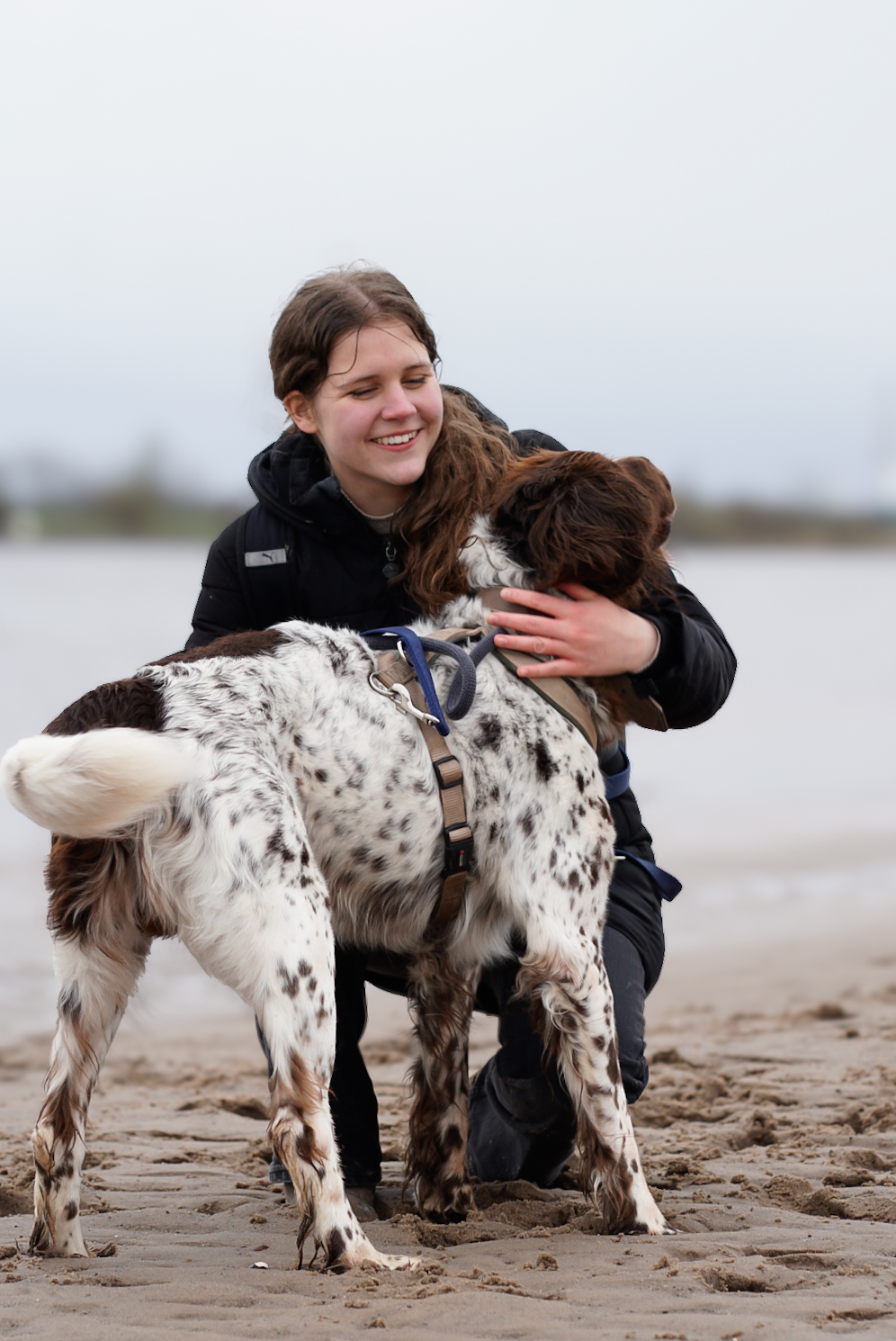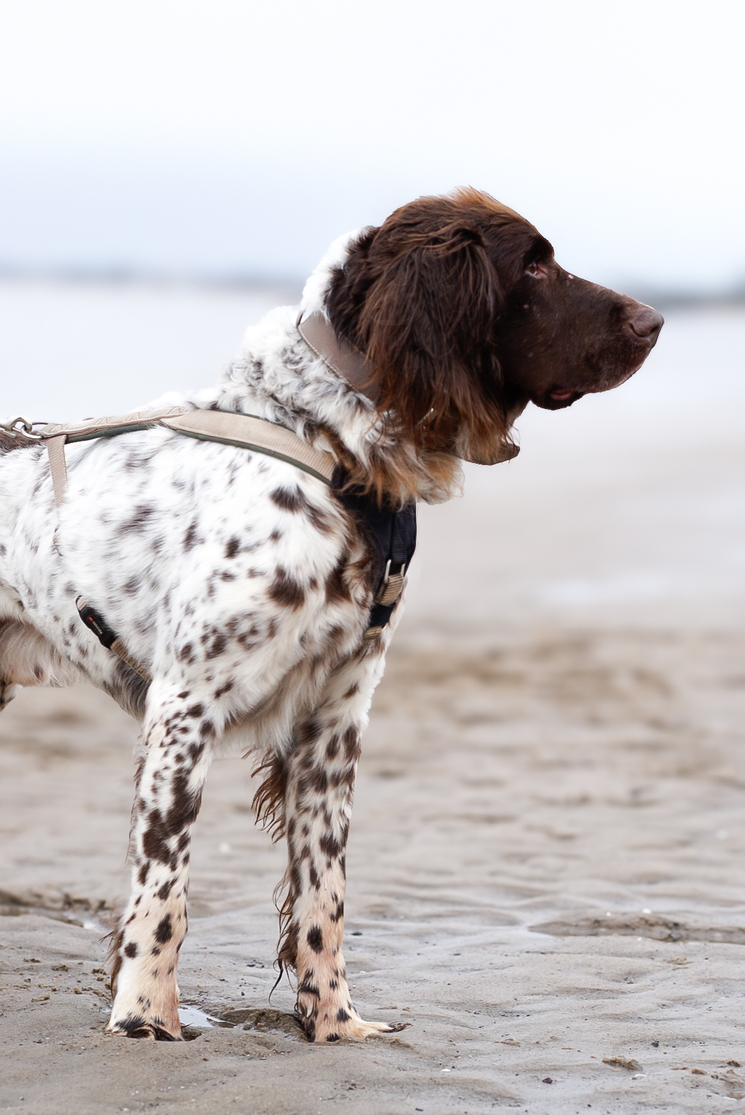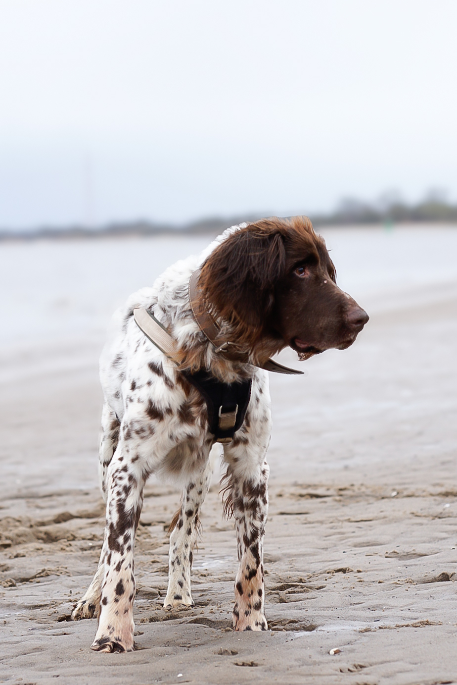Leider hat er, trotz eines gewissen jagdlichen Ausbildungsstandes, nicht so viel Erziehung genossen. Da er vermutlich nur für die Jagd ausgeführt wurde, ist der draußen, ohne geistige Auslastung, sehr auf Zug unterwegs.