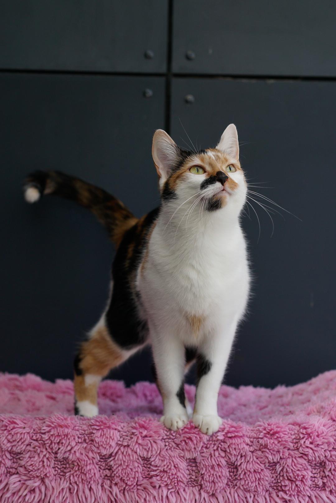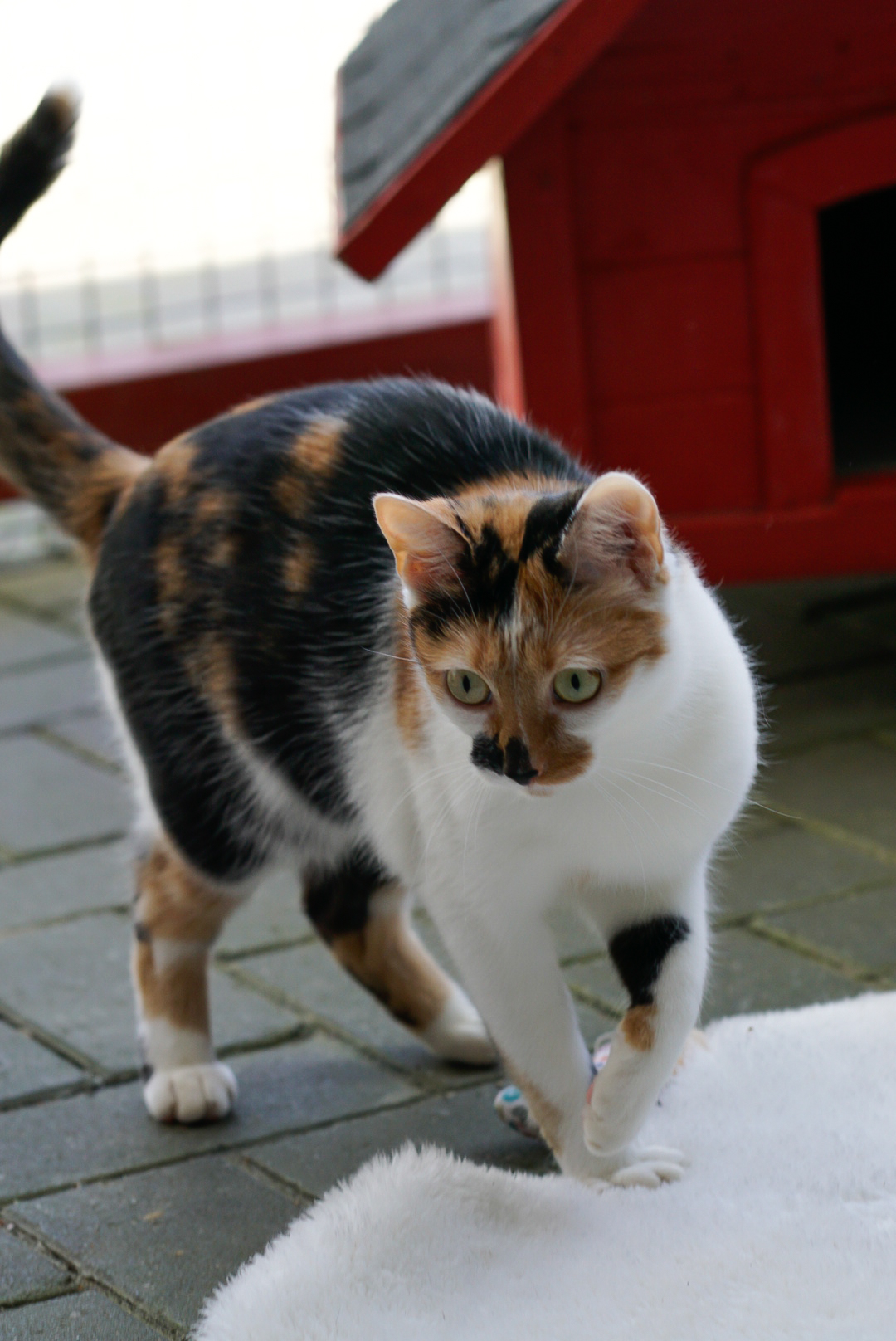 Sie ist eine sehr zutrauliche Katze, die aber nicht viel Lust auf andere Katzen hat. Ihre Mitbewohner kriegen regelmäßig eine verpasst, wenn diese zu nahe kommen.