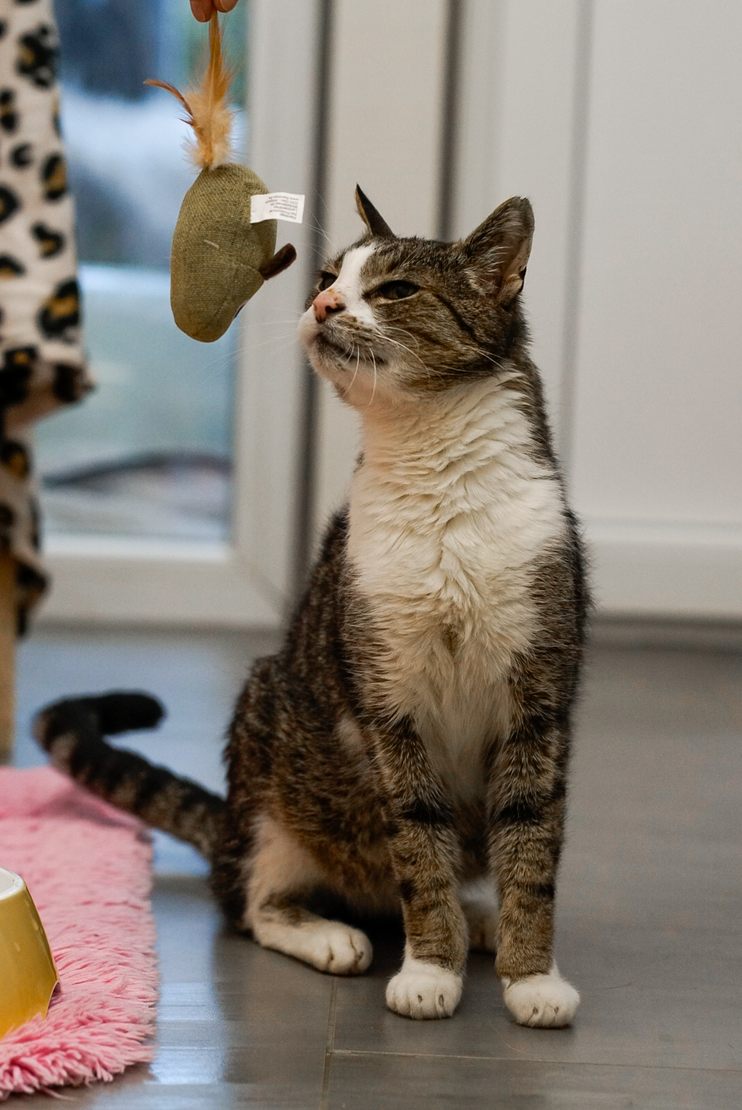 Er ist super verkuschelt und liebt es zu essen. Leider nimmt er aufgrund seines FiVs schwer zu. Hat aber sehr guten Appetit.