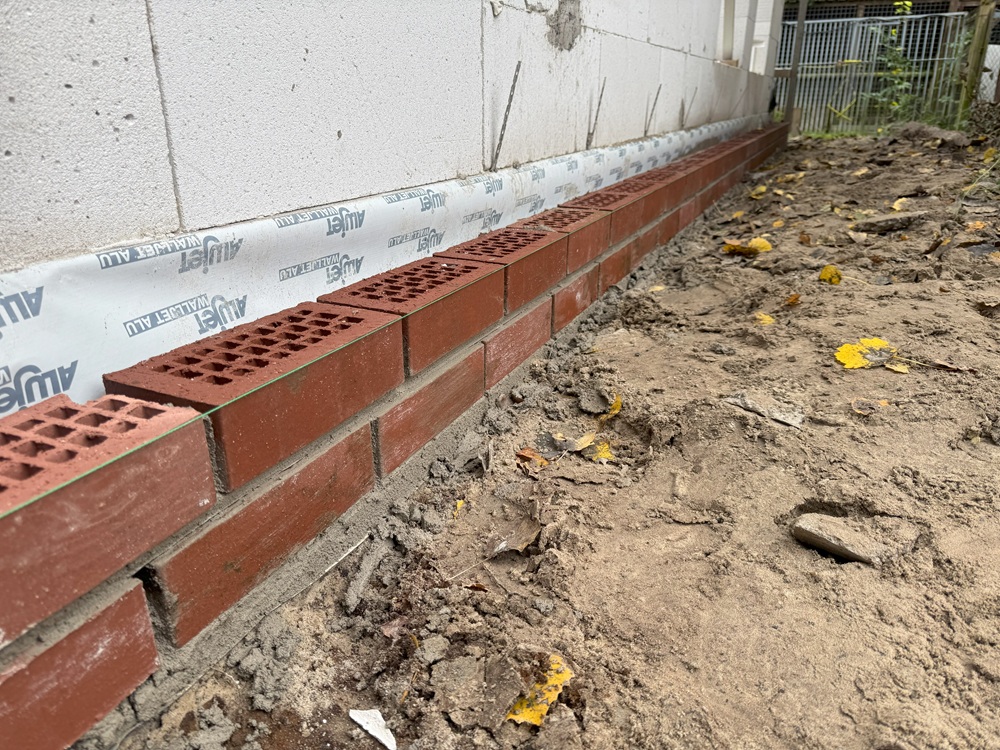 Heute konnte der Ringanker fertiggestellt werden. Wieder ist ein Meilenstein erreicht und ich freue mich über den Fortschritt. Zudem wurden die ersten Klinkersteine gemauert, die im unteren Bereich das Reinigen vereinfachen soll.