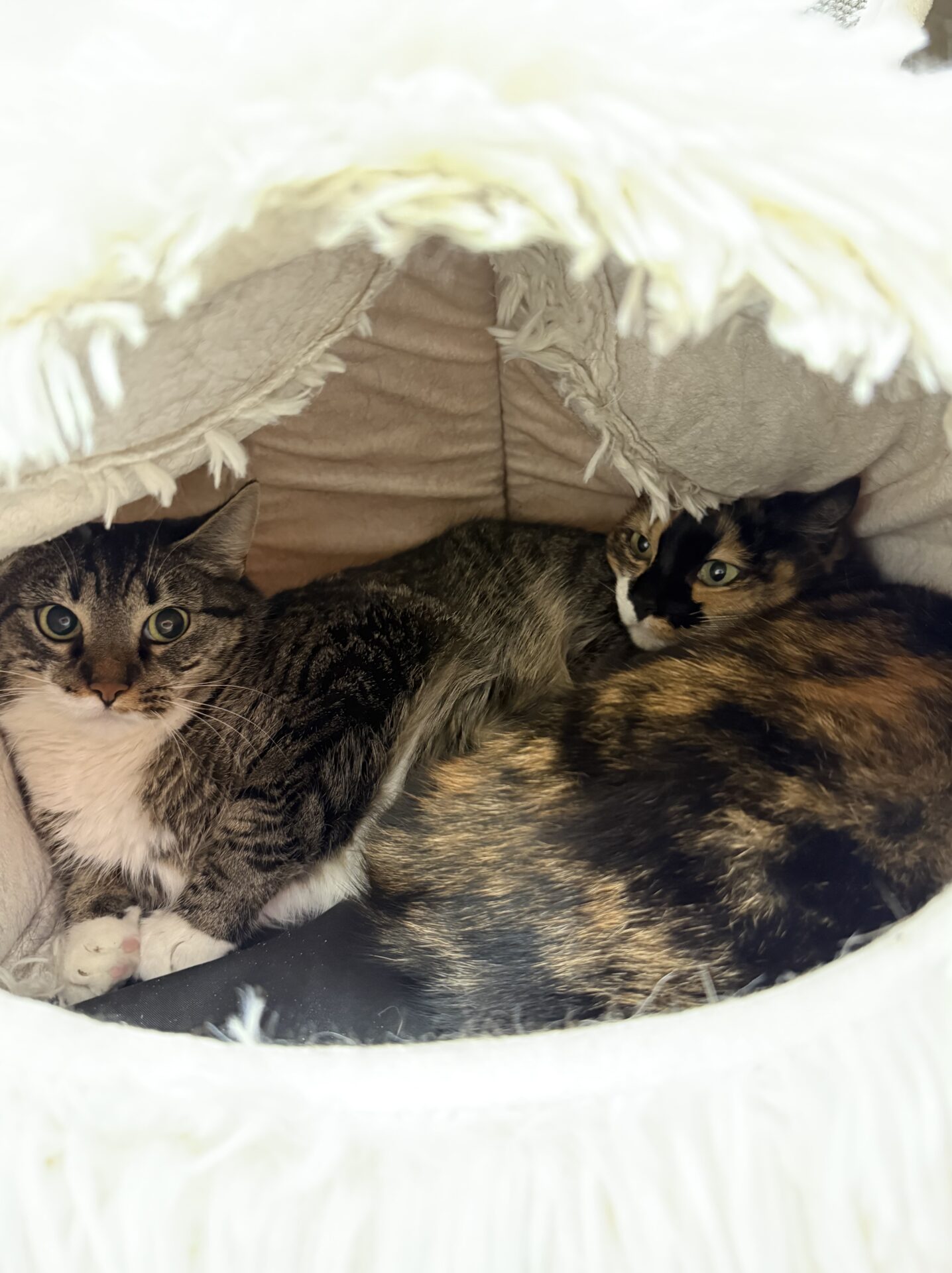 Beide Katzen möchten nicht unbedingt den Kontakt zum Menschen. Weshalb es großartig wäre, wenn sie zusammen als Mäusefänger ausziehen würden.