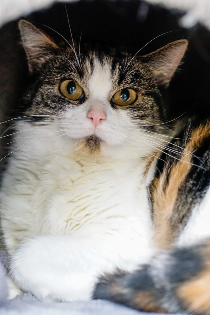 Sie gehört zu den scheueren Katzen, die sich trotzdem ein wunderbares zu Hause wünscht. Mit Ruhe und Geduld kann sie hoffentlich endlich ankommen.